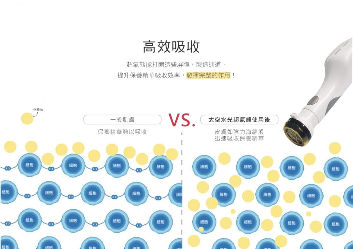 太空水光是新一代--深層育膚療程所設計的儀器,利用超氣態科技改善肌膚底層,將肌膚調理到健康透亮狀態。